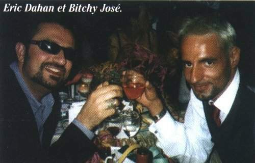 Mais Jos avait laiss Bitchy la maison, en troquant son survet-casquette contre un costard-gilet du plus bel effet. Heureusement, l’habit ne fait pas le moine et Jos ne calqua pas son comportement sur la rigidit de son costume ! Si l’apritif se droule tranquillement, il n’en est pas de mme pour le repas qui s’avre des plus agits ! Jos renonce a organiser le plan de table et laisse Angelo, Chriss, Tyra, Tennessee, matresse Malika, matre Yann Pedler, Guilain et Ludo, Mauvaise Seb, Akim, Fanny, Thomas Primo, Eric Dahan et Beverly, et Christine, le soin de se trouver une place. La chanson de Rgine : « La grande Zoa », accompagne l’arrive des entres, tandis qu’un mime aux couleurs du rainbow flag a la mauvaise ide de nous distribuer des serpentins… Il ne faut pas plus de cinq minutes pour voir la table se couvrir de rubans de couleurs, Tyra tenant sa perruque d’une main et se protgeant de l’autre, tandis que Chriss se cache sous un tas de serpentins. Une minute d’inattention et le feu (au sens figur comme au sens propre) se rpand sur la table. Ma sour Thomas, n’coutant que son courage, saisit mon verre de vin pour teindre ce dbut d’incendie sous les applaudissements de toute la table ! Jos continue entretenir la chaleur de la soire en se dshabillant, encourag par Fanny qui s’empare de deux serviettes pour rembourrer sa poitrine, tandis qu’Angelo devise tranquillement avec Eric Dahan. Les autres invits ne manquent pas de venir saluer Jos, notamment Jean-Louis de L’Amazonial, Radouane et Stphane S. Didier Vrit dcide tout coup de baisser les lumires, plongeant l’assistance dans l’attente. Au son d’une musique puissante, un gteau sort de la cuisine, Jos retient son souffle et guette la pice monte qui termine son parcours sur la table… d’ ct, pour l’anniversaire d’une jeune Fille ! Fou rire gnral la table et applaudissements pour cette premire tentative. Quelques instants plus tard, des danseurs de french cancan font oublier l’incident et les lumires sont baisses une nouvelle fois. Mais cette fois-ci c’est la bonne et tous les convives font une bruyante standing ovation Bitchy, visiblement trs mu et trs concentr pour bien teindre toutes les bougies d’un coup ! Magali du Rude fait son apparition et ne peut que constater l’tat d’brit avanc de la table, dserte quelques instants par Fanny, Angelo et Eric Dahan, qui se trmoussent sur la piste de danse. Thomas, Didier Vrit et Chriss ont un commentaire appropri pour tout ce qui bouge et ne tarissent pas d’loge sur le superbe costume de Frdric du Mixer Bar. Philippe Baldini et Foc Kan sont l pour immortaliser l’anniversaire de Jos et alimenter les pages people de Voici, Gala et Paris Nuit. Il est temps de gagner Le Cabaret puis le Scorp, o l’ambiance ne retombe pas. C’est Angelo que revient le mot de la fin : « Avec Bitchy, c’est nuit blanche en permanence ! ». Dommage que son anniversaire n’aie lieu qu’une fois par an !