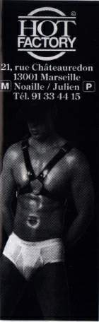 If you trail this summer on the side of the old port, if after (or front, moreover) a good bouillabaisse and a half-dozen of pastis, you have like a small (or enormous) desire of you (to make) for draining, know that even the city phocenne has its sex-club and soon its gay-house *. Hot-factory and the warehouse are the Marseilles versions of the mix Docks / IEM; with, in premium, private television sets built-in in each cabin! One meets there truths guys ‘ av the assent’ (or not), but which want as much of it if not more than with the capital (tested and approved!). The ‘ after-beach’ (after ranges) make un(e) ml(e)heur(e)! Hot factory: 21, street Chateauredon 13001 Marseilles (04.91.33.44.15) Tariff 40 F (6 Euros). The warehouse: street Moustier 13001 Marseilles (opening in August) * baizodrome.