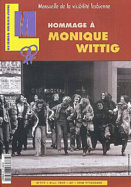 in Kiosque Presse LESBIA MAGAZINE MARS 2003 1 mars 2003, 0 h 00 min Hommage monique Wittig Laisser un commentaire Annuler la réponse Votre adresse de messagerie ne sera pas publiée. Les champs obligatoires sont indiqués avec *Commentaire Nom * Adresse de messagerie * Site web See more Article précédent Serial fucker, Journal d’un barebacker Article suivant Parents juifs et enfants homos : le dialogue