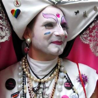 Soeur Maria Camélia de l’Esprit Charnel : Les Soeurs sont nées en 1979 a San Francisco lors du week-end de Pâques. Quatre folles sortirent dans Castro Street, au coeur du quartier gay, vêtues de véritables robes de nonnes et armées, pour l’une d’elle, d’une mitraillette à eau. De cafés en pubs, et jusqu’à Land’s End, une plage naturiste gay, elles voulaient « mettre de l’animation dans l’imagerie d’un samedi saint ». L’année d’après l’Ordre international des Soeurs de la Perpétuelle Indulgence était officiellement créé.