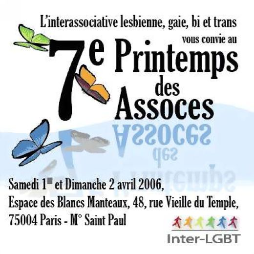 Forte du succès des éditions précédentes, l’Interassociative lesbienne, gaie, bi et trans (Inter-LGBT) organise le dimanche 2 avril à partir de 13 heures la septième édition du Printemps des assoces à l’Espace des Blancs Manteaux (48 rue Vieille du Temple Paris IV). Ce rendez-vous militant et convivial s’inscrit dorénavant dans le paysage LGBT au même titre que la Marche des Fiertés parisienne dont l’Inter assume l’organisation.