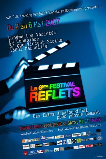 Devenu un événement incontournable de la cité phocéenne, et encouragé par son succès public grandissant à chacun de ses rendez-vous, le Festival «REFLETS, des films d’aujourd’hui pour penser demain» aux thématiques lesbiennes, gay, bi et trans. présente sa 6ème édition, et ouvre ses portes aux festivalières et festivaliers du mercredi 2 au dimanche 6 mai 2007 à Marseille.