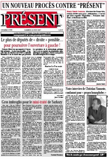 Autre signe à l’attention de l’électorat frontiste, l’entretien que Christian Vanneste a accordé à la veille du second tour au quotidien d’extrême droite Présent, dont la devise est «Dieu, Famille, Patrie».