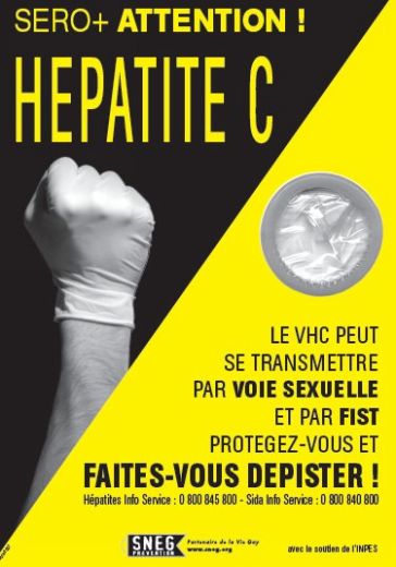 Le SNEG Prévention lance dans les établissements communautaires gays une campagne d’information et d’incitation au dépistage du Virus de l’Hépatite C (VHC) en partenariat avec la Direction Générale de la Santé (Ministère de la Santé).
