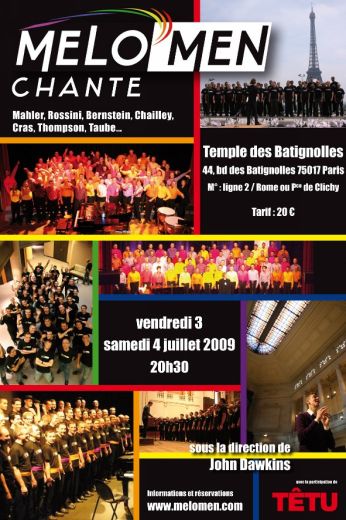 A applaudir sans faute les vendredi 3 et samedi 4 juillet 2009 à 20h30 au temple des Batignolles à Paris sous la direction de John Dawkins.