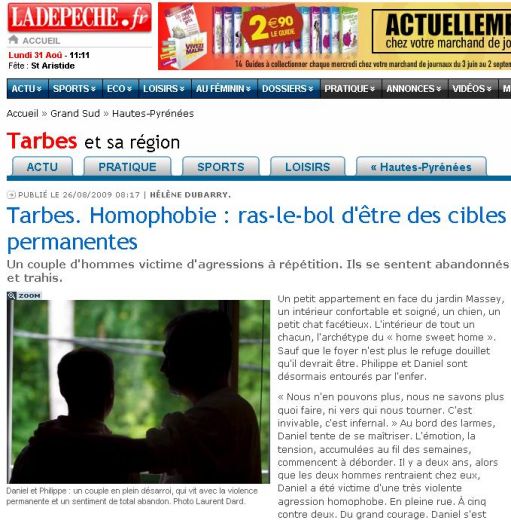 Dans son édition du 26 août dernier, le quotidien La Dépêche du midi relate «l’enfer au quotidien» vécu par Philippe et Daniel, un couple demeurant à Tarbes (Hautes-Pyrénées).