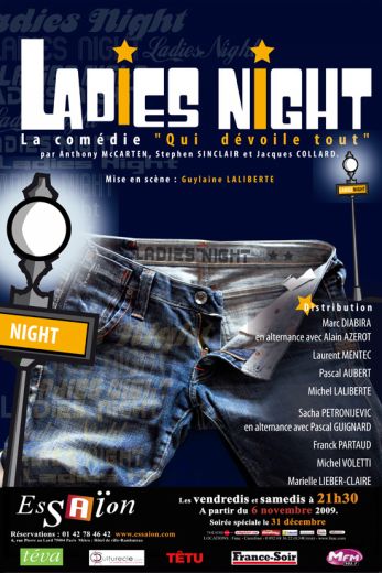 Ladies Night du 28 Novembre 2008 au 27 Mars 2010 les vendredis et samedis à 21h30 les dimanches à 19h30 au Théâtre Essaion 6 rue Pierre au Lard à l’angle du 24 rue du Rena – 75004 PARIS – Métro Hotel de Ville / Rambuteau