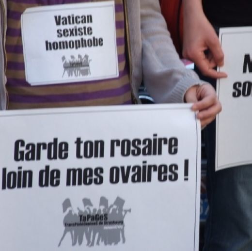 Une autre manifestation s’est tenue à Strasbourg devant la représentation du Vatican au Conseil de l’Europe, manifestation organisée par TaPaGeS.