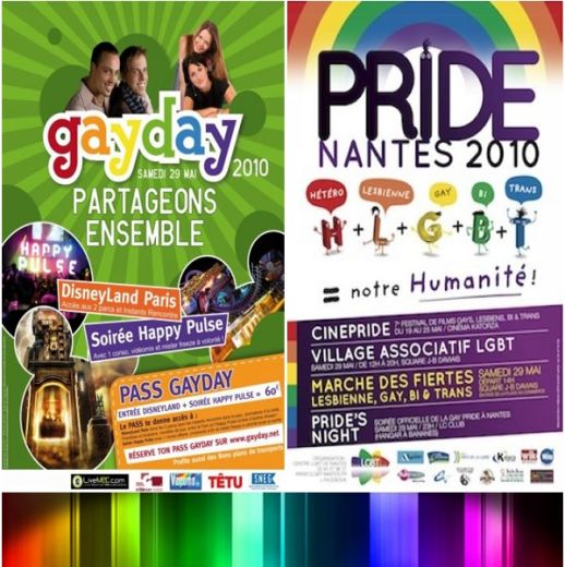 Après Tours le week-end dernier pour la Pride de Région Centre (article), c’est au tour de Nantes ce samedi de clôturer une semaine de visibilité LGBT avec une Pride dans les rues de la préfecture de région des Pays de la Loire. Le même jour, à Marne la Vallée et à Paris, le GayDay 2010 viendra apporter un moment de convivialité pour ses participants.