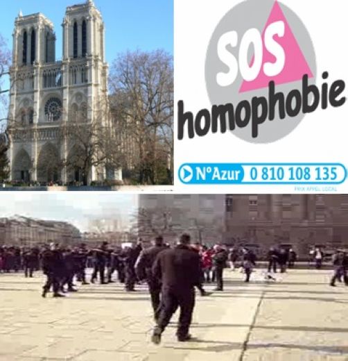 Des plaintes de victimes avaient été déposées par des participantEs au Kiss-in informel qui s’était tenu sur le parvis de Notre-Dame le 14 février dernier, jour de la Saint Valentin (article). Alors qu’initialement prévu sur ce même lieu, celui officiel avait été déplacé par ses organisateurs Place Saint Michel suite à l’indication de menaces, quelqu’unEs s’était déplacéEs sur le parvis de la cathédrale pour montrer aussi bien que l’espace public est libre de voir s’exprimer l’amour homosexuel que de refuser, dans un espace républicain, les pressions d’extrémistes.