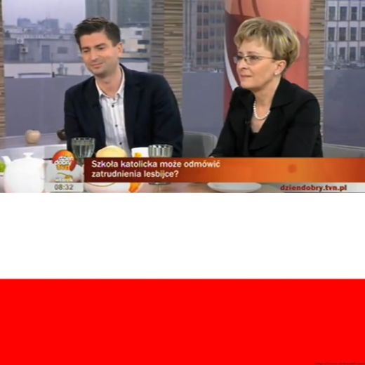 La ministre et le militant des droits de l’Homme étaient venu débattre des propres déclarations de Elzbieta Radziszewska au quotidien catholique Gość Niedzielny où la ministre justifiait le fait qu’une une école catholique puisse renvoyer ou refuser d’embaucher un enseignant homosexuel.