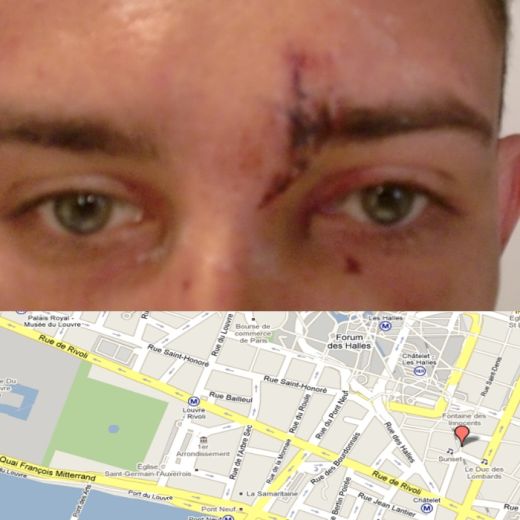 Le visage ensanglanté, Frédéric a pris la fuite et s’est réfugié au commissariat du 3ème arrondissement. Après avoir signalé son agression et rencontré les pompiers qui lui ont prodigué les premiers soins, le jeune homme s’est rendu aux urgences proches de l’Hôtel Dieu. En chemin, voulant prévenir son conjoint, il s’est aperçu qu’on lui avait dérobé son téléphone. Plus tard en début de matinée, Frédéric est ressorti de l’hôpital avec 5 points de sutures autour de l’oeil gauche et un hématome.