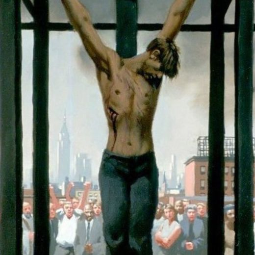 Nous reproduisons ici quelques-unes des 24 peintures servant d’illustration au livre, dont on en finit par se demander ce qu’il peut bien avoir de si choquant. « Cette vision de Jésus en gay est ici pour guérir de la haine et de la discrimination pratiquées au nom du Christ. Jesus aimait tout le monde, y compris ses ennemis, mais il a été rejeté par la société. Ils ont emprisonné le Sauveur. »