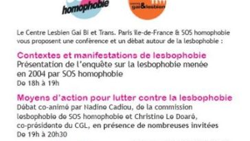 17 MAI – IDAHO – JOURNEE MONDIALE CONTRE L’HOMOPHOBIE! Le 17 mai, journe mondiale de lutte contre l’homophobie aussi appele IDAHO (International Day Against Homophobia), le Centre Lesbien Gai Bi et trans. de Paris le-de-France se joindra aux nombreuses associations et organismes franais oeuvrant en faveur des droits humains, pour manifester simultanment avec 40 pays, […] Lire la suite