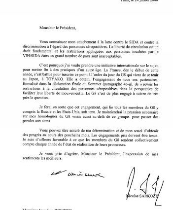 Nicolas Sarkozy répond à Jean-Luc Romero sur la libre circulation des séropositifs